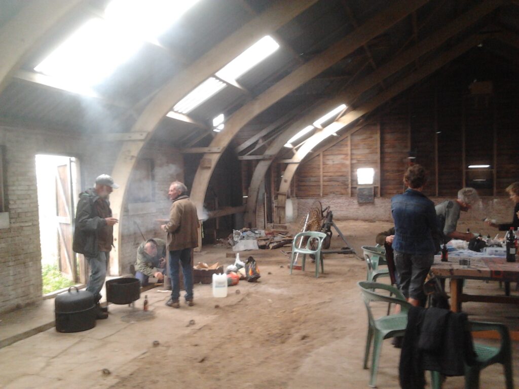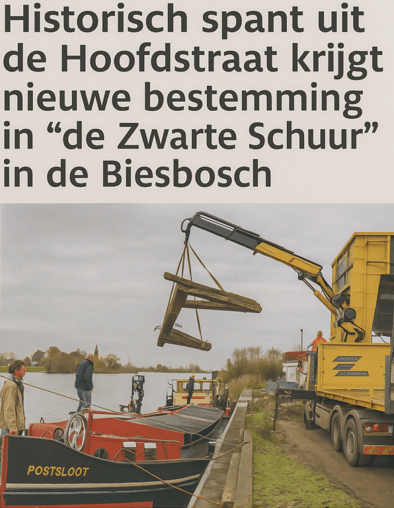 Een oud spant werd met de Postsloot van Frans Peeters opgehaald en naar de Zwarte Schuur gebracht om daar gebruikte te worden in de toen nieuw te bouwen boerenkeuken.