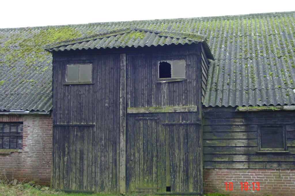 De Zwarte Schuur voordat de Stichting het beheer overnam. Het asbest dank was zeer aan vervanging toe. De algehele staat van de schuur was matig tot slecht te noemen. Werk aan de winkel dus.